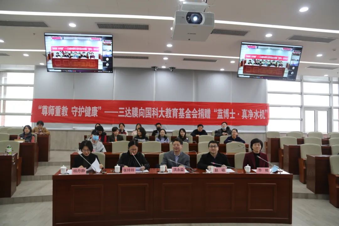 國(guó)科大經(jīng)管學(xué)院院長(zhǎng)洪永淼教授首先致辭,他指出,對(duì)三達(dá)膜科技(廈門(mén))有限公司向國(guó)科大教育基金會(huì)捐贈(zèng)300臺(tái)藍(lán)博士?jī)羲畽C(jī)及濾芯用于保障國(guó)科大師生飲水安全與健康致以衷心的感謝。